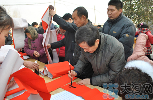 省委宣傳部副巡視員杜瑞明代表省直四家單位講了話,向官渡橋村村民送上節(jié)日的祝福。隨后,慰問團的領(lǐng)導向官渡橋村農(nóng)民群眾和小學生贈送了文體用品。由省委宣傳部邀請的薛青、郝曉冬等省內(nèi)多位知名演員為村民們表演了歌舞《田野里的春天》、豫劇《朝陽溝》選段、相聲《大腕研究》、嗩吶《百鳥朝鳳》等七個精彩的節(jié)目。在近兩個小時的演出中,臺上演員們精彩的表演,博得群眾的陣陣掌聲。省委宣傳部機關(guān)黨委專職副書記李憲林、創(chuàng)建處處長張德偉揮毫潑墨,現(xiàn)場為鄉(xiāng)親們義寫春聯(lián)。省九三學社邀請的省醫(yī)療專家為鄉(xiāng)親們傳播健康衛(wèi)生知識,現(xiàn)場檢查治療。中原出版集團和河南人民出版社為鄉(xiāng)親們贈送了科技圖書讓大家過春節(jié)時學習,整個慰問活動場面熱烈,氛圍濃厚。