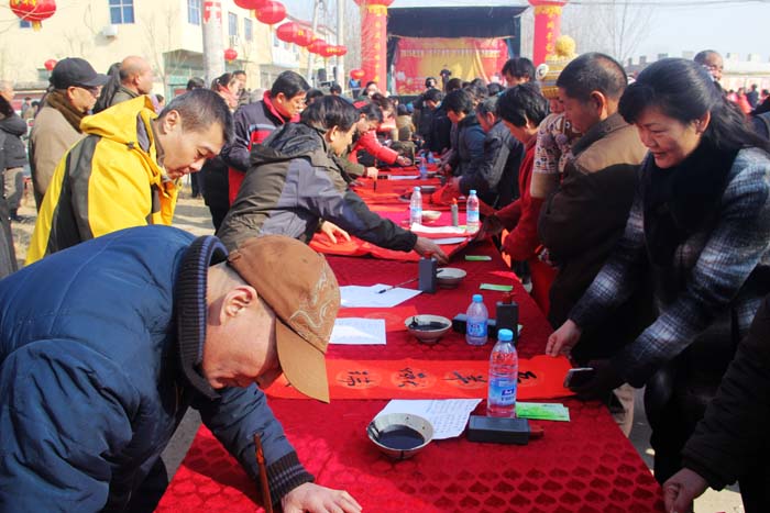 昔日古戰(zhàn)場(chǎng),今朝更吉祥。2015年2月6日上午,由省委宣傳部和省文聯(lián)、省政府金融辦主辦,鄭州市委宣傳部、河南省文藝家志愿者協(xié)會(huì)、河南省省直書(shū)畫(huà)家協(xié)會(huì)協(xié)辦的全省“踐行價(jià)值觀 新年送春聯(lián)”活動(dòng)啟動(dòng)儀式,在中牟縣官渡鎮(zhèn)官渡橋村舉行。省委宣傳部常務(wù)副副長(zhǎng)王耀同志在啟動(dòng)儀式上講話(huà),副部長(zhǎng)王慶同志主持了儀式。省金融辦副主任李栓成、鄭州市委常委、宣傳部長(zhǎng)王哲等也參加了活動(dòng)儀式。